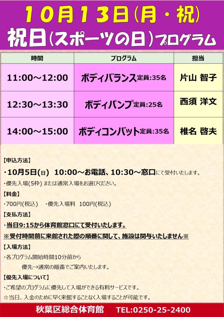日頃より秋葉区総合体育館をご利用いただきまして、ありがとうございます。 11月3日(月・祝)に『LesMills FES 2025』というイベントを開催することになりました。 文化の日の一日、人気のLesMillsプログ […]