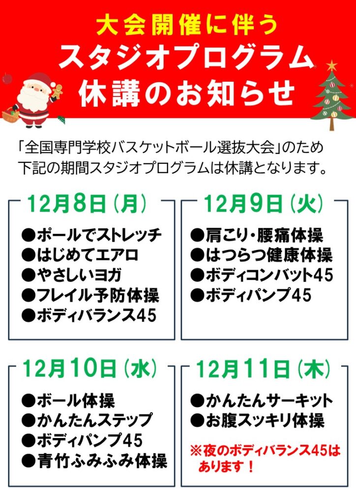 日頃より、秋葉区総合体育館をご利用いただきまして誠にありがとうございます。 秋葉区総合体育館では、様々な種類のスタジオプログラムをご用意しています。 『どんな事をするクラス?』『どんな効果があるの?』『自分にできるか […]